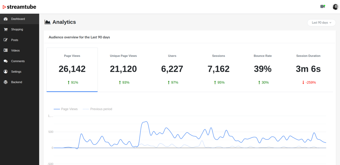 作为一个时尚且面向业务的视频WordPress主题,StreamTube适用于各种用途,从博客作者和在线视频教育者到产品营销人员。借助其内置的Google Analytics报告,您可以监控用户与您的内容的互动,并每天和每月获取有价值的见解。这些报告提供有价值的统计数据和搜索结果,帮助您做出关于您的视频网站的明智决策。