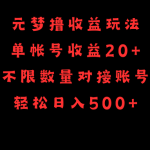 元梦撸收益玩法,单号收益20+,不限数量,对接账号,轻松日入500+
