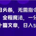 今天讲的课程是利用最新出来的全自动写今日头条文章的AI工具,一分钟一键生成原创文章,而且排版、配图都自动整理好的。我们只需复制粘贴到头条号发布就行。利用这个工具,我们可以无限批量生成文章,以前做头条最头疼的写文章问题瞬间解决。那么你只需要多找一些能提现的头条号,每天复制粘贴文章,就能翻倍的赚头条图文收益,非常简单粗暴。文章中介绍了项目原理,和详细的实操过程,新手小白看完课程也能轻松上手操作。蓝海项目,先入场吃肉,后入场喝汤,好项目不等人,别等到一片红海的时候再入场,连汤都喝不上、就只能吃剩骨头了。